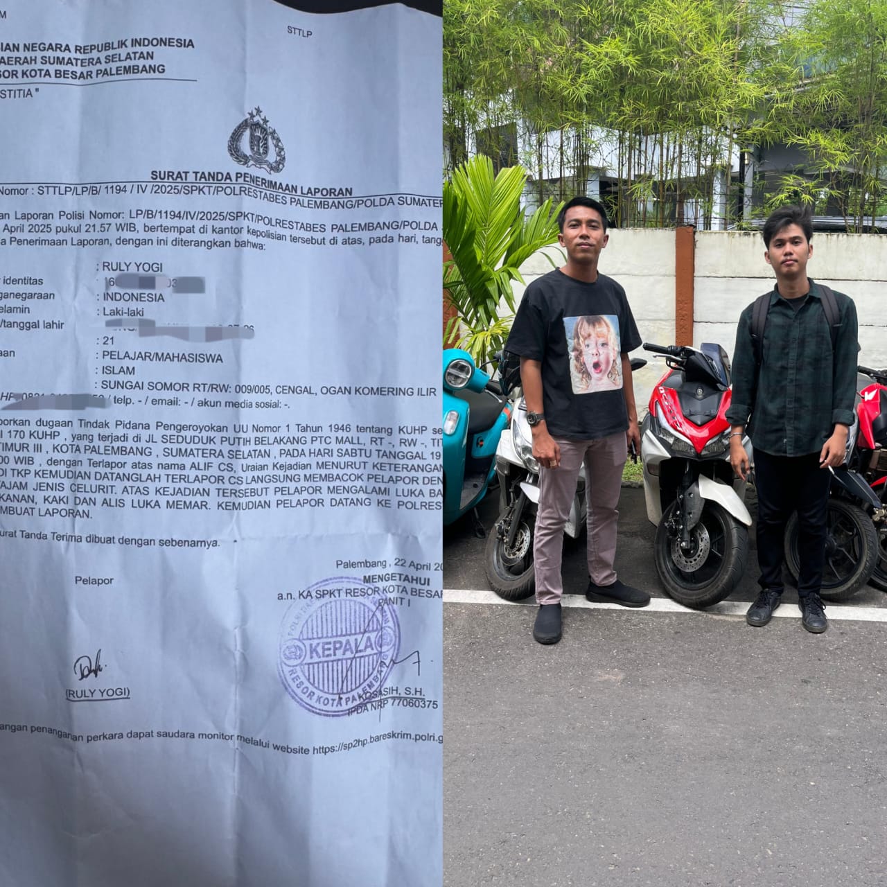 Laporan resmi dengan nomor STTLP/LP/B/1194/IV/2025/SPKT/POLRESTABES PALEMBANG/POLDA SUMATERA SELATAN seolah hanya menjadi tumpukan kertas tanpa taring. Peristiwa berdarah yang terjadi pada Sabtu, 19 April 2025 di Jalan Seduduk Putih (Belakang PTC Mall) tersebut telah membuat Yogi menderita luka bacok serius di tangan kanan, kaki, serta luka memar di wajah akibat sabetan celurit.