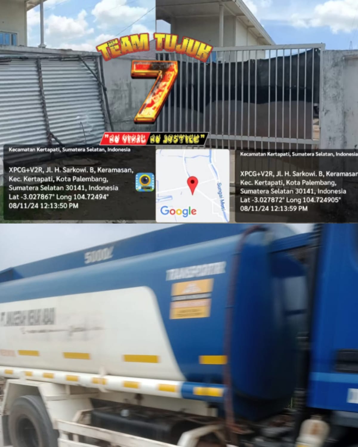 Palembang – Warga di Kelurahan Keramasan, Kecamatan Kertapati, Kota Palembang, mengeluhkan aktivitas BBM ilegal di Jalan H.Syarkowi, Sungai Pedado, tepatnya di depan Citra Land. Mobil tangki berwarna putih biru milik PT Anugrah Melia Abadi dilaporkan kerap keluar masuk ke gudang BBM ilegal yang disebut milik Iman dan Kandar.