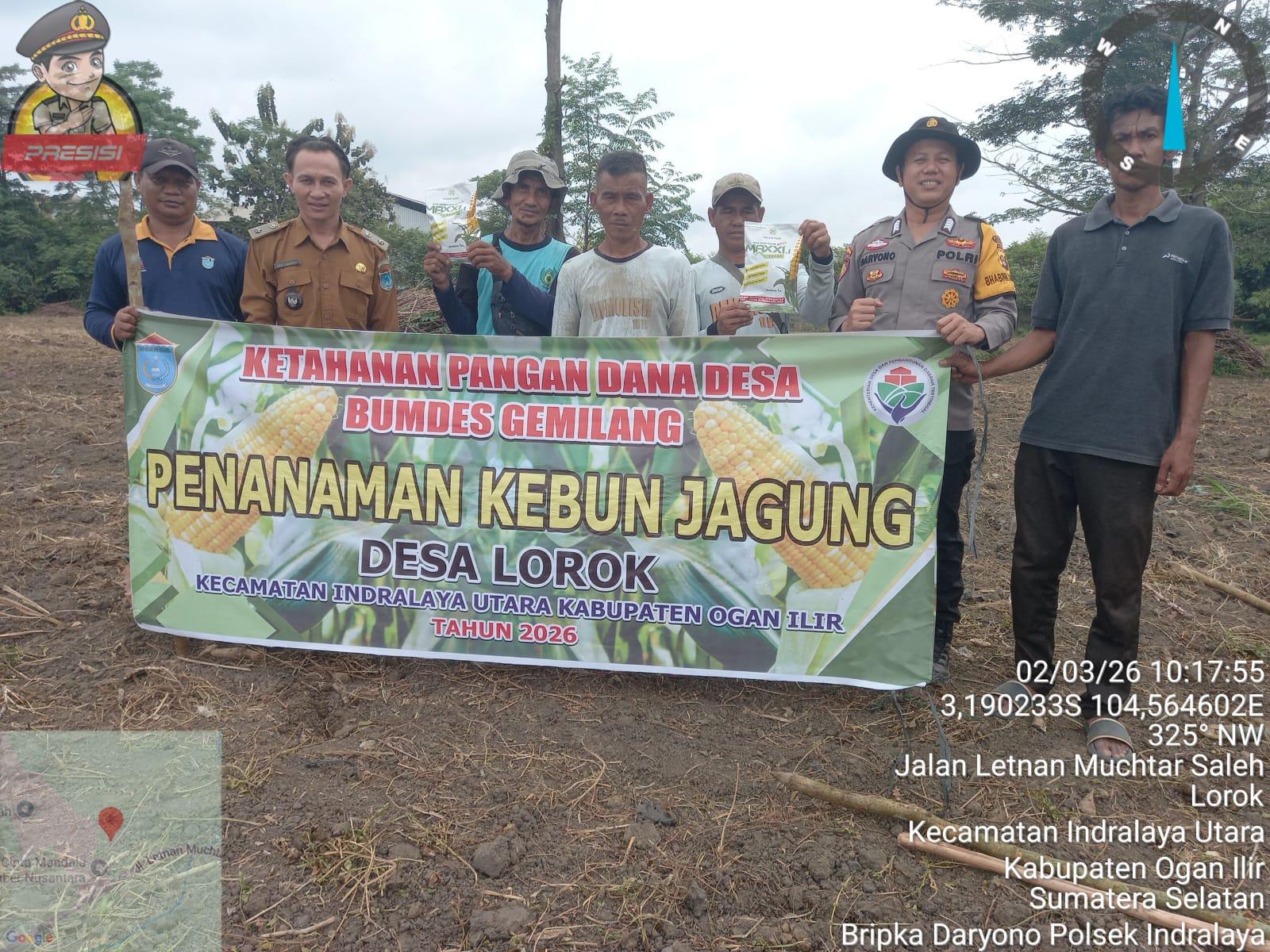 OGAN ILIR – Komitmen memperkuat ketahanan pangan nasional terus digelorakan hingga ke tingkat desa. Pada Senin (2/3/2026), Polres Ogan Ilir melalui Polsek Indralaya bersinergi dengan Pemerintah Desa Lorok meluncurkan program penanaman jagung pipil di lahan produktif Dusun III, Desa Lorok, Kecamatan Indralaya Utara.