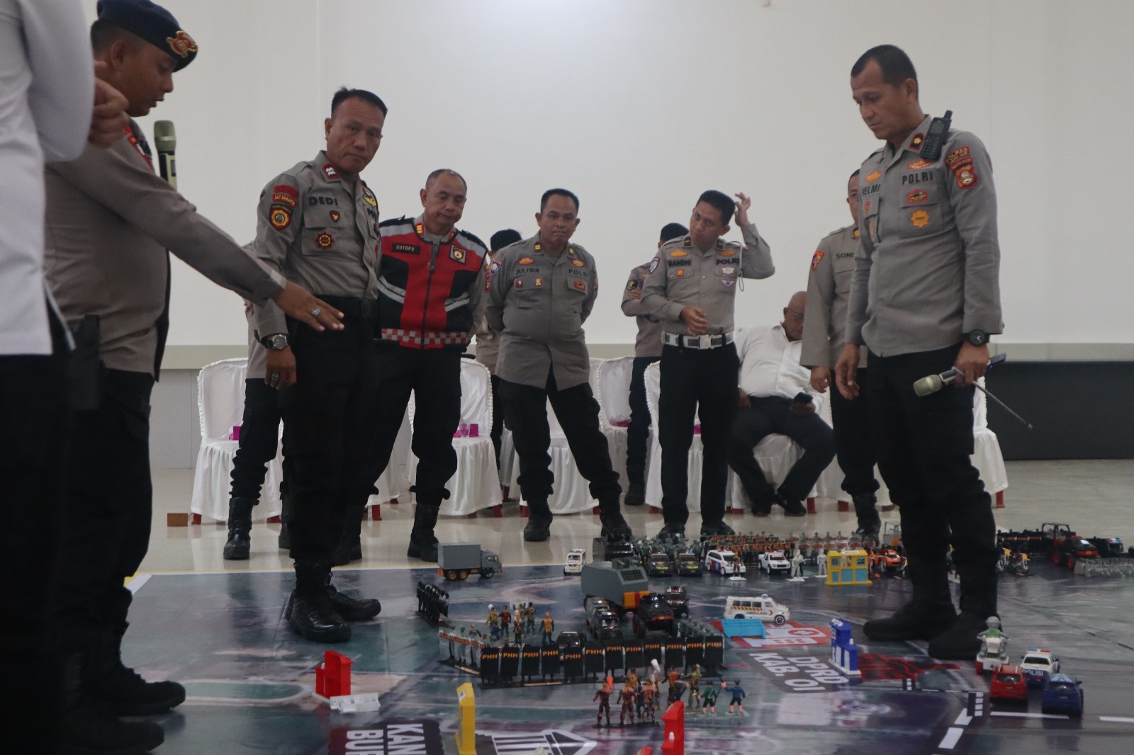 Simulasi yang dipimpin Waka Polres Ogan Ilir Kompol Helmi Ardiansah, S.H., M.H, ini dihadiri oleh PJU, Kapolsek jajaran, dan personel sprin pengamanan. Kegiatan ini memvisualisasikan skenario lapangan menggunakan peta maket untuk menyamakan persepsi antar fungsi Dalmas.